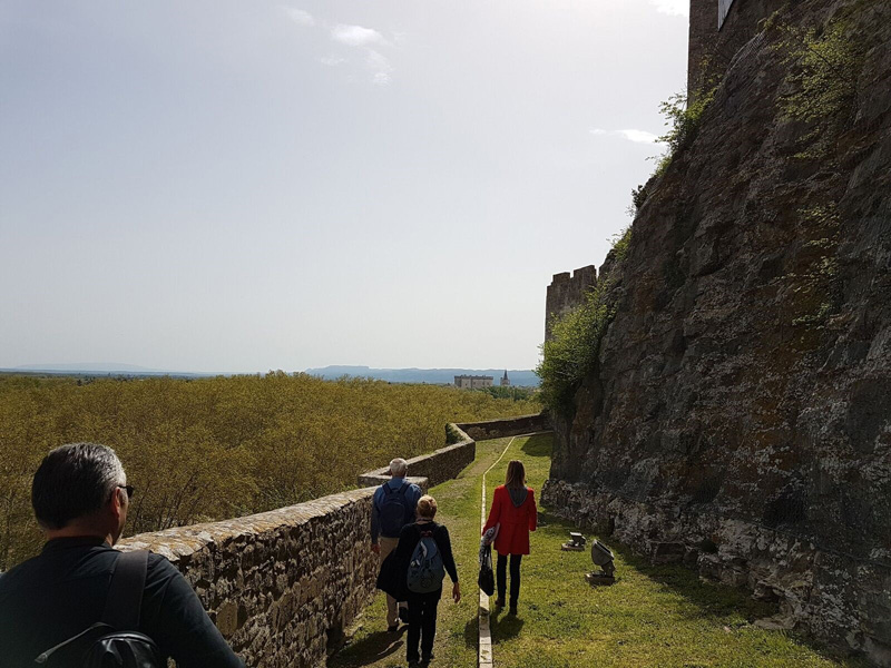 La deuxième partie de notre visite a concerné la forteresse à l’histoire bien tourmentée depuis les romains. Nous avons eu le plaisir de monter au sommet du donjon pour y admirer un panorama à couper le souffle (pas qu’à cause des escaliers, on se serait cru dans « Des racines et des ailes »). Très belle construction pour laquelle les hommes ont dû se montrer très très ingénieux pour composer avec le relief, les ennemis et le mistral. Ah le siège des hérétiques, j’y étais (contre Simon) !