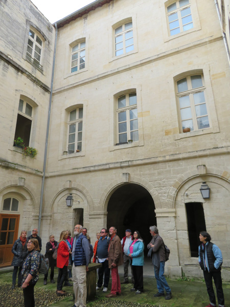 Après les traditionnelles inquiétudes du rassemblement, nous avons filé pendant trois heures dans les pas de Nathalie Schmitt, guide gardoise multi lieux. Ses discours précis et justement dosés nous ont permis de revivre les fameuses foires beaucairoises. A partir du XIIIème siècle, les beaucairois ont connu grâce à des privilèges fiscaux, au mois de juillet des foires internationales parmi les plus importantes d’Europe, jusqu’à 100 000 personnes, un chiffre d’affaire équivalent à celui annuel du port de Marseille ! Tout dans le Beaucaire historique respire ces foires : les places, les rues, les églises, les maisons, les cours… difficile de ne pas voyager dans le temps, de ne pas avoir envie de revivre cette ambiance aventureuse. On comprend facilement que plusieurs lieux du centre aient servi de décors de films.