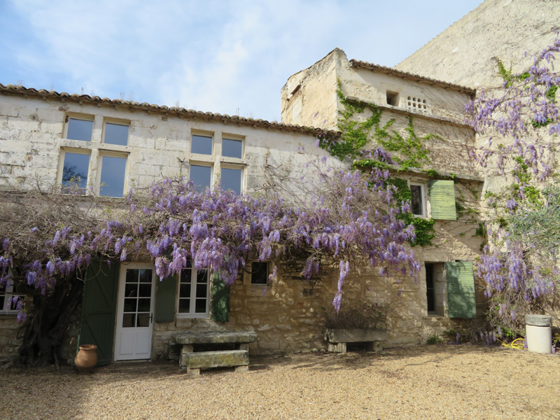 Mr Roche m’avait dit au téléphone, en une heure et quart, nous aurons fait le tour. Nous avons fait le tour très lentement, si bien qu’au bout de deux heures, je réalisais qu’il nous serait impossible de visiter sereinement le mas des Tourelles qui m’avait prévenu que pour des problèmes de personnel, nous ne pouvions pas avoir de visite guidée et qu’ils fermaient impérativement à 18 heures. Nous renonçâmes à cette dernière étape et écouterons le conseil de Jean-Michel : « Allez-y en automne, pendant les vendanges, la visite est bien plus enivrante ». Isabel et Michel ont tout de même poussé leurs roues jusqu’au mas et ne l’ont pas regretté, les trois dernières photos vous donneront un avant-goût.